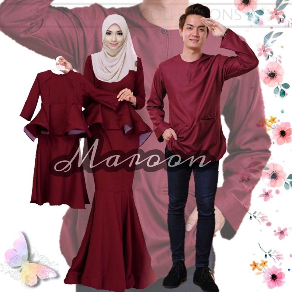 Inkmania Duoset Couple Sedondon Baju Kurung Kurta Diyana Maroon Ready Stocks Shopee Singapore